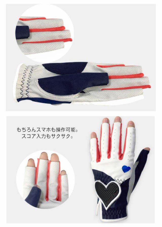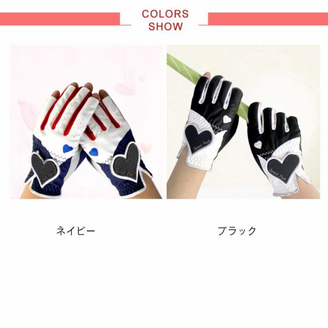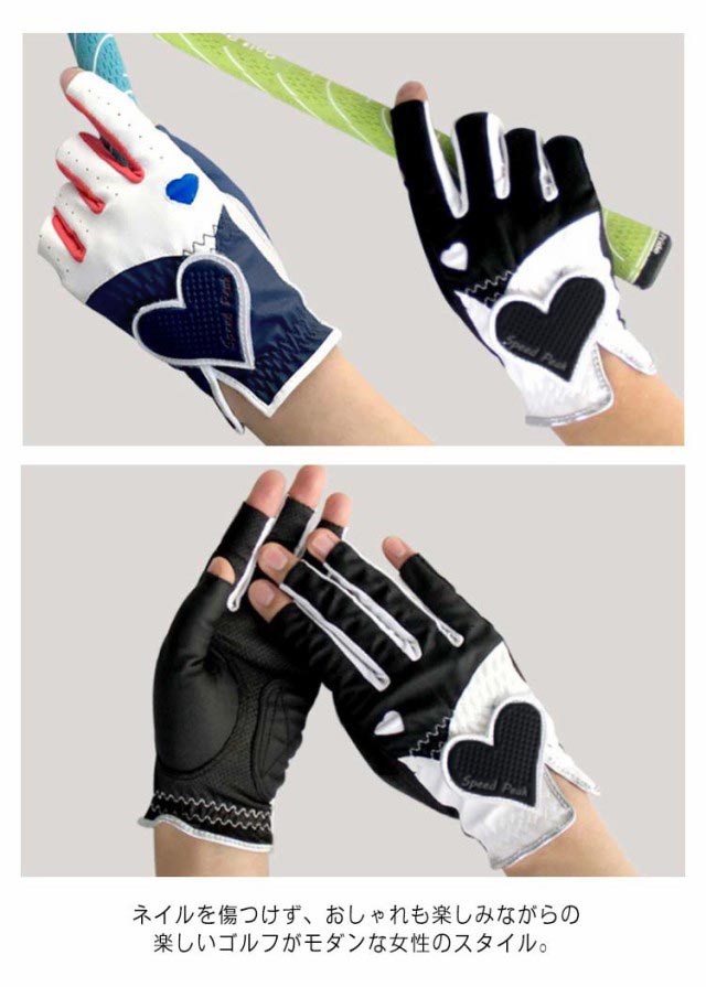 ゴルフグローブ 両手 ネイル レディース 指先カット 春 夏 秋 合成皮革 ゴルフ グローブ 手袋 ハート UVカット ネイルカット ゴルフ用品 送料無料