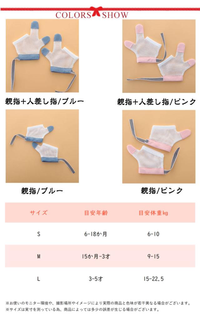 指しゃぶり 防止 手袋 爪噛み 矯正 予防 やめさせる 方法 指吸い 出っ歯 歯並び 吸いだこ 指なめ 噛みあわせ 対策 2歳 3歳 4歳 5歳 調節可能 通気性 選べる2タイプ 全2色