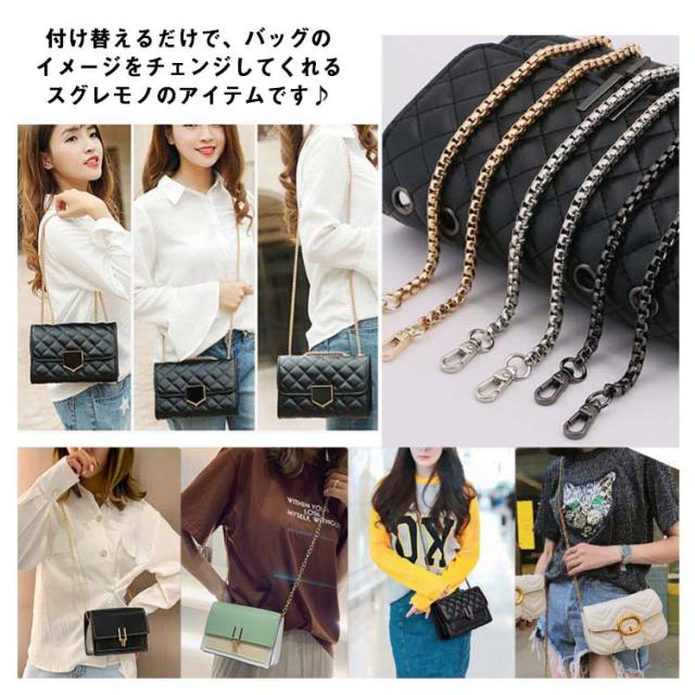 【送料無料】ショルダーストラップ チェーン ショルダーベルト チェーンストラップ 単品 付け替え用 交換用 細い ショルダーバッグ ストラップ 斜めかけ 肩掛け バッグ 色落ちしない おしゃれ 大人 シンプル 黒