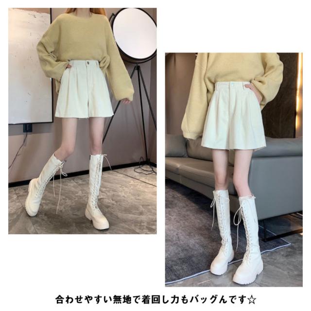 ショートパンツ レディース 春秋 秋冬 コーデュロイ生地 ーデュロイショートパンツ フレア aライン ハーフパンツ ミニ ミニ丈 暖かい 防寒
