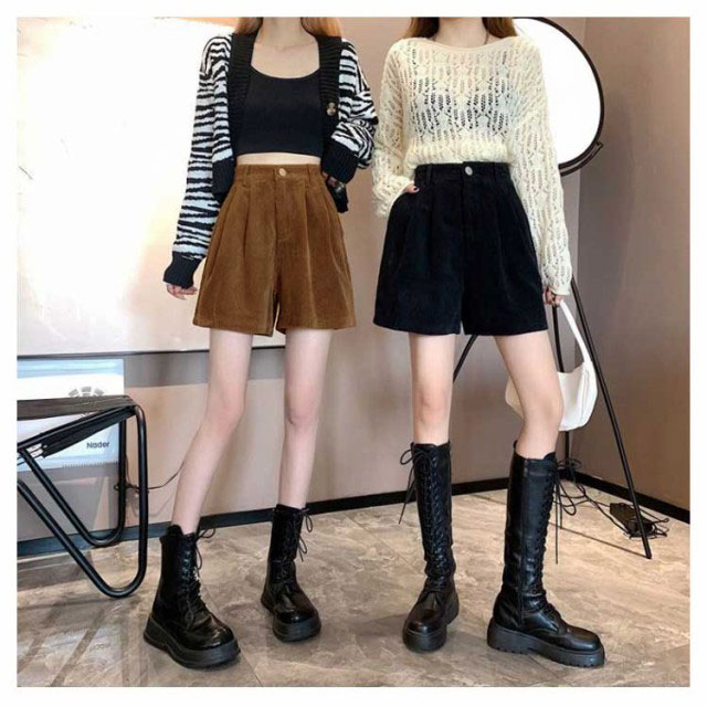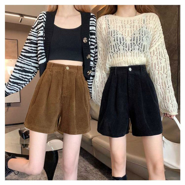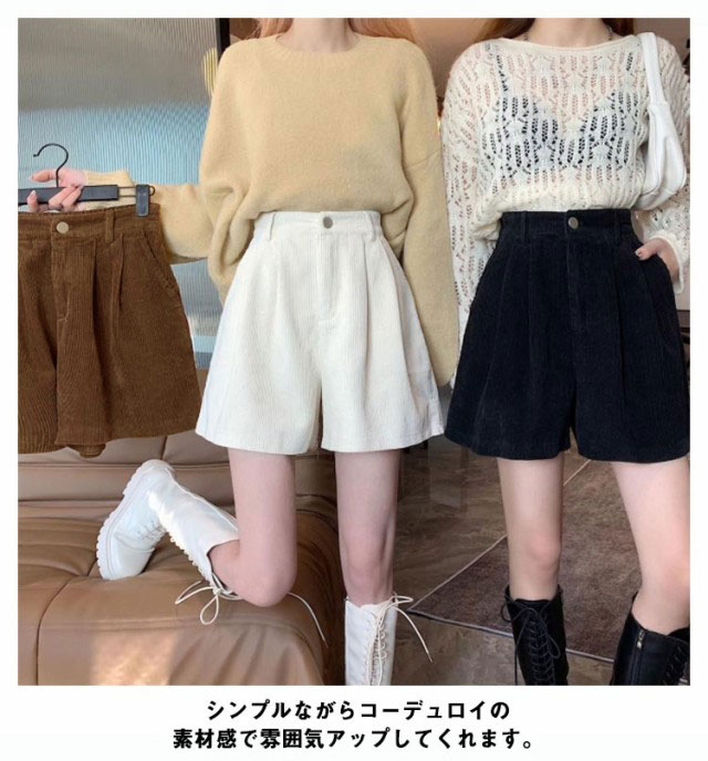 | 寒いシーズンでも大活躍のコーデュロイのショートパンツ! 高級感のあるコーデュロイ生地! 合わせやすい無地で着回し力もバッグんです☆ シンプルながらコーデュロイの素材感で雰囲気アップしてくれます。 | |