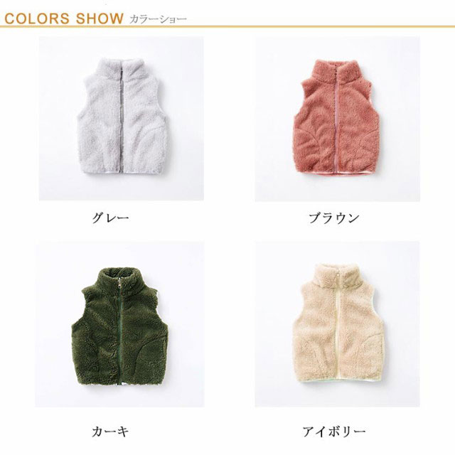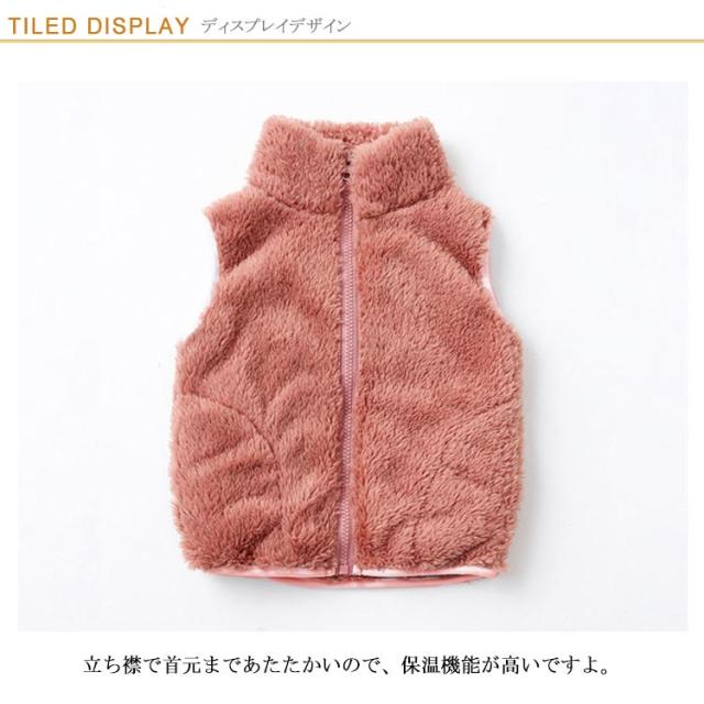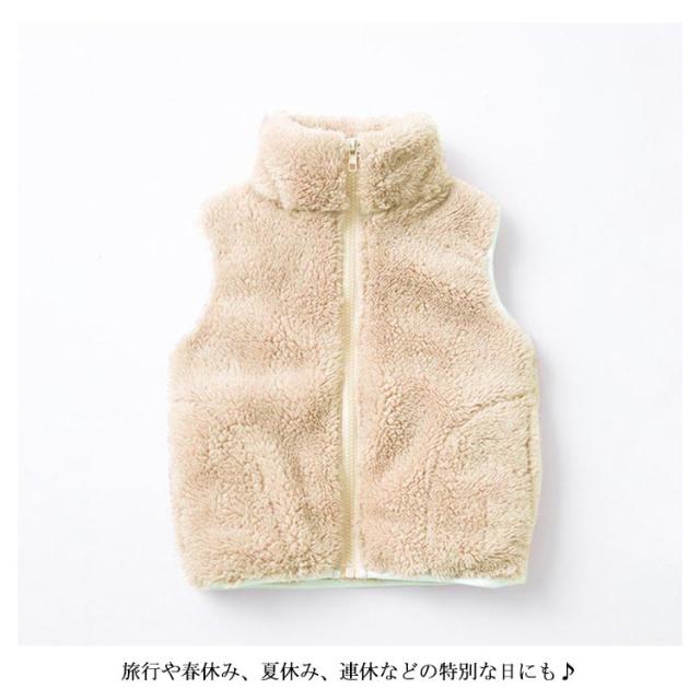 ボアジャケット ボアベスト フリースベスト キッズ 子供 秋服 フリース ボア アウター ベスト スタンドカラー 立ち襟 インナーベスト 子供服 女の子 男の子 無地 秋 冬 モコモコ ふわふわ 暖かい 保温 ポケット付き【送料無料】