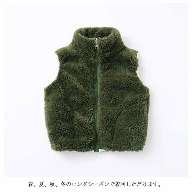 | もこもこした肌触りが特徴のハイパイルフリースベスト 軽くて保温性に優れたやわらかなフリースボアを使用。 立ち襟で首元まであたたかいので、保温機能が高いですよ。 春、夏、秋、冬のロングシーズンで着回しただけます。 保育園・幼稚園・学校への通園通学、お散歩などの日常のシーン、学校行事の遠足、ピクニックなど動きやすさ重視の時にも♪ 休日の遊びや遊園地などへのお出かけ、バーベキュー(BBQ)などのイベントやレジャーでみんなと差をつけたいときも♪ 旅行や春休み、夏休み、連休などの特別な日にも♪ 毎日ベビドコーデを楽しんじゃお | |