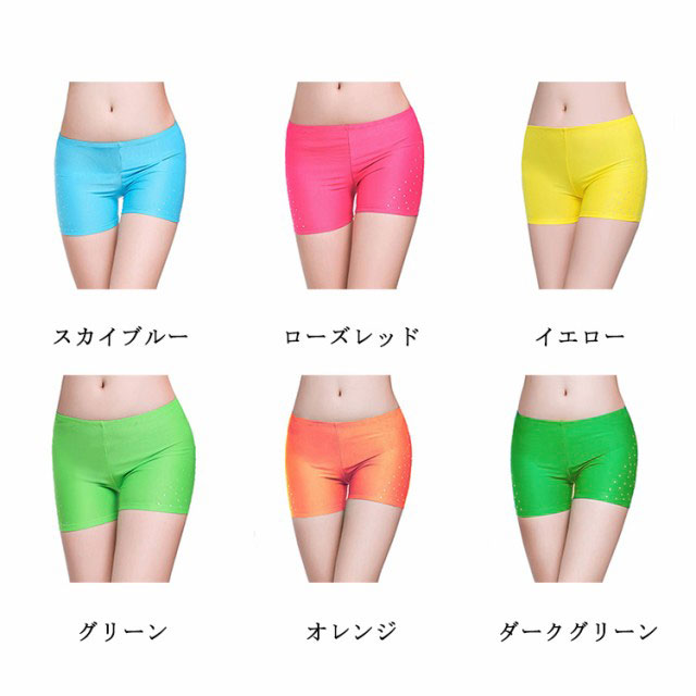 ベリーダンス インナーパンツ 見せパンツ 三分丈 ラインストーン付 レディース 女性 インナーショートパンツ ダンスインナー ショーツ ラインストーン飾り付 社交ダンス ストレッチ素材 全12色