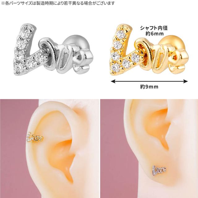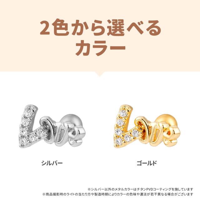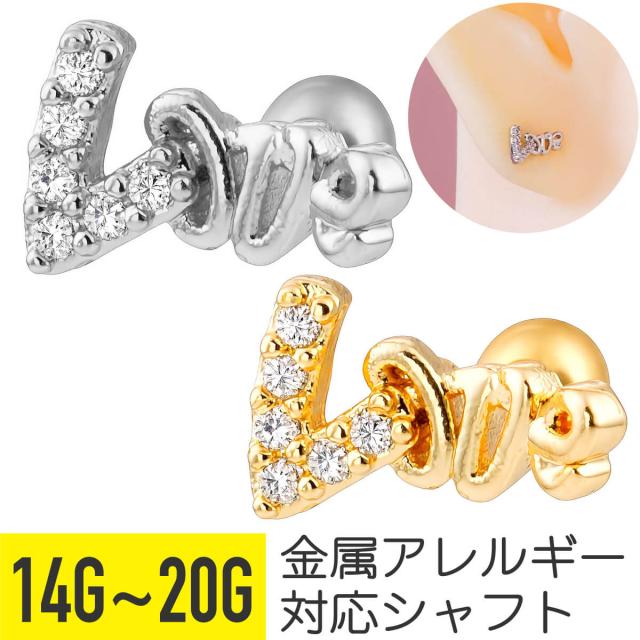 ラブ Love ジュエル ストレートバーベル 14G 16G 18G 20G サージカルステンレス ジルコニア ヘリックス 軟骨ピアス ボディピアス 英語