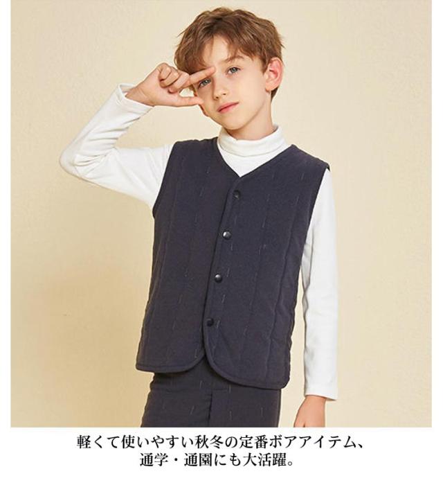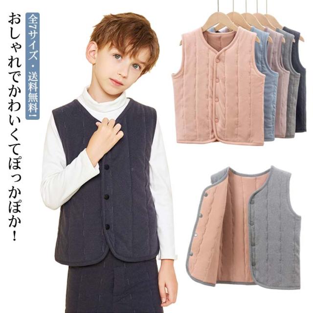 全7サイズ・送料無料! ベスト キッズ アウター ジャケット 中綿 女の子 男の子 子供服 上着 インナーダウン 秋 冬 中綿ベスト ジレ 暖かい 保温性 防寒対策 大きいサイズ 女児 子供用 子ども服 保温 防寒 軽量 クルーネック