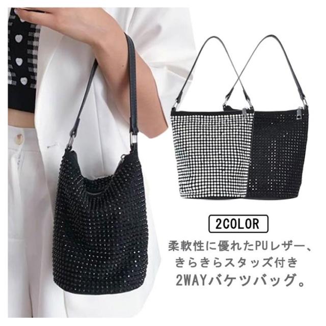 送料無料 キラキラ ビジュー ストーンバッグ バッグ カバン レディース ショルダーバッグ バケツ型 トートバッグ バケツバッグ レザートート フェイクレザー 裏地付き きらきら 通勤バッグ シンプル お洒落 キレイめ