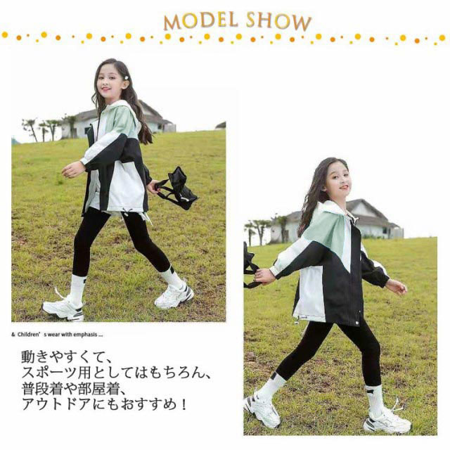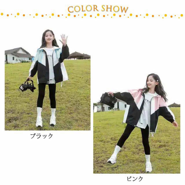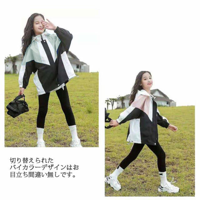 マウンテンパーカー キッズ 女の子 ウィンドブレーカー 子供服 アウター フード付き ジャケット ジャンパー 秋物 防風 春コート 薄手 ジップアップ トップス 配色 切り替え お洒落 ブルゾン ガールズ ジャンパー カジュアル 春 秋 送料無料 120 130 140 150 160 170