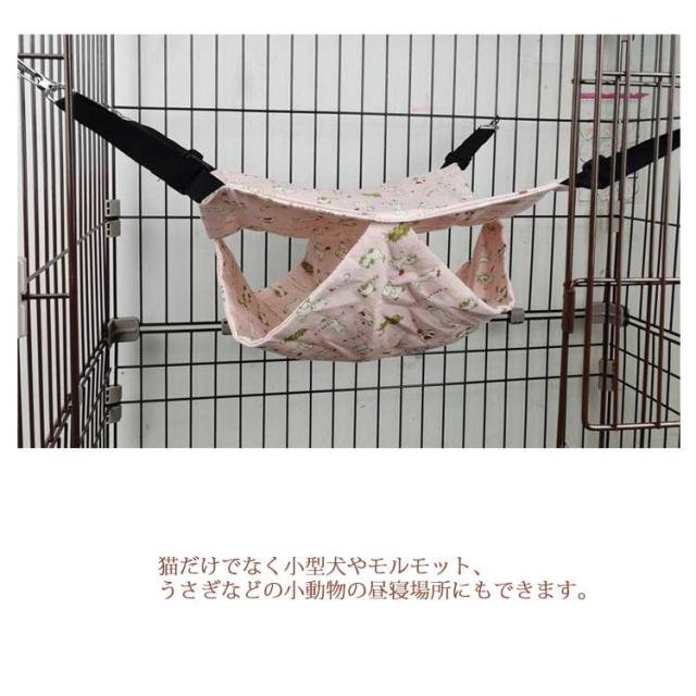 | 肌触りのよいフリース生地を使用!屋根付きの2重層デザイン 肌触りのよいフリース生地を使っており、屋根付きの2重層デザインで寝心地も抜群。 アジャスター付きベルトで、設置する高さも自在に調整可能。 猫だけでなく小型犬やモルモット、うさぎなどの小動物の昼寝場所にもできます。 | |