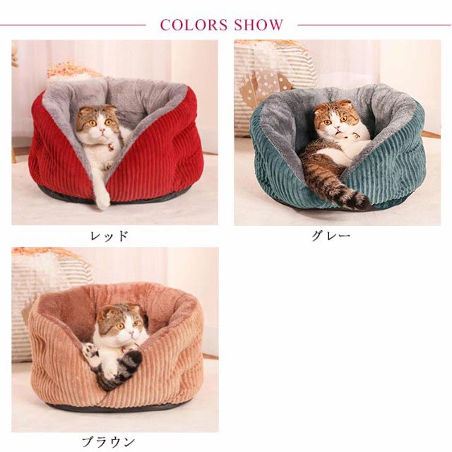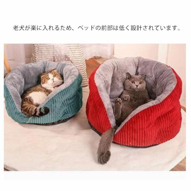 | ふんわりクッションが気持ちいい、あったか素材の秋冬仕様のペット用ベッド。 ふかふかもちもちですっぽり収まるラウンド型。 いつい潜っちゃう気持ち良い寝心地! 老犬が楽に入れるため、ベッドの前部は低く設計されています。 | |