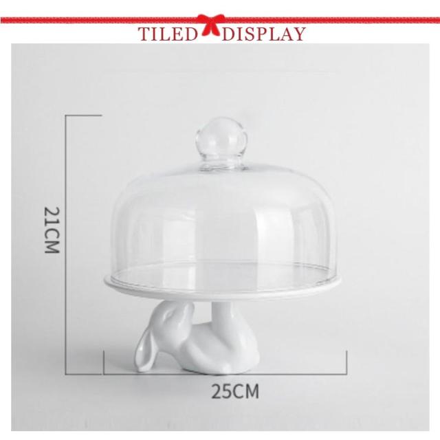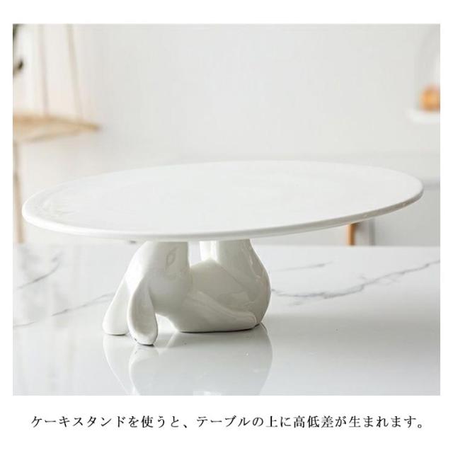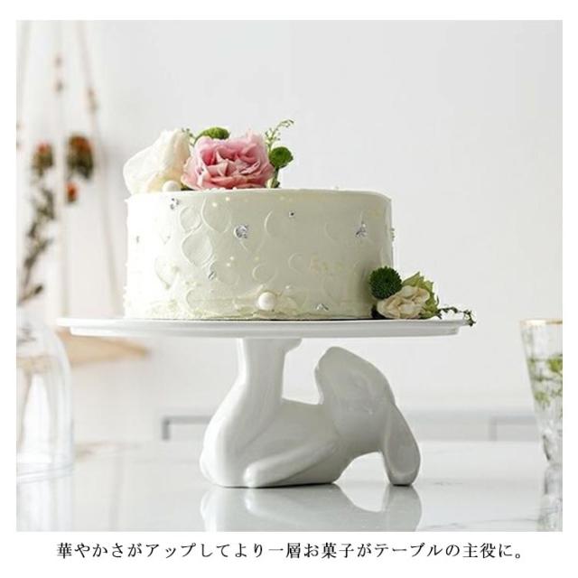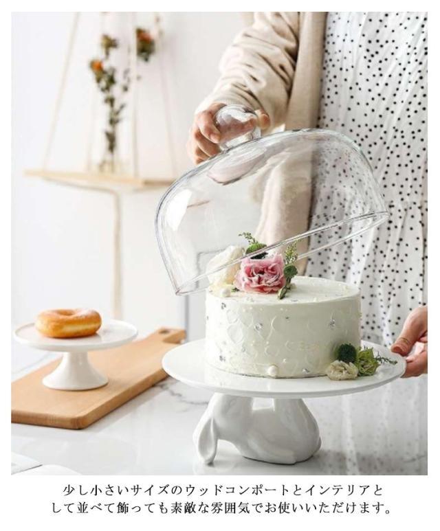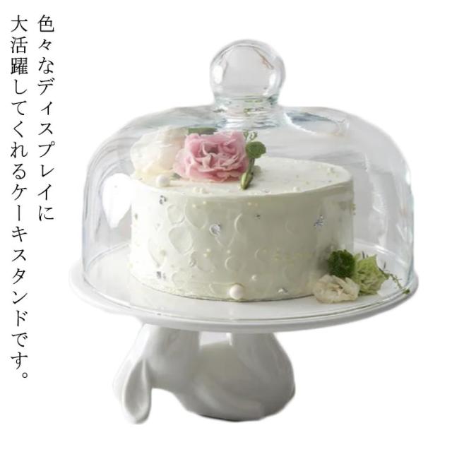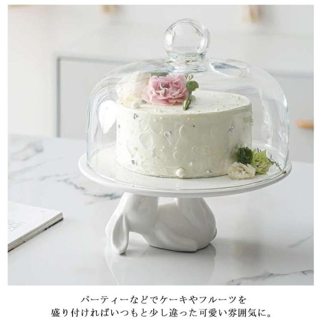 ケーキスタンド 北欧 かわいい ウサギ 白 ケーキトレー 陶器 ガラス 蓋つき おしゃれ ディスプレイ コンポート ティータイム 磁器 製菓 キッチン カフェ インテリア 雑貨 モノトーン シンプル 蓋付 硝子蓋