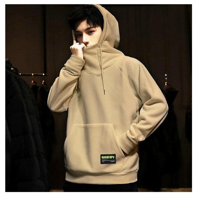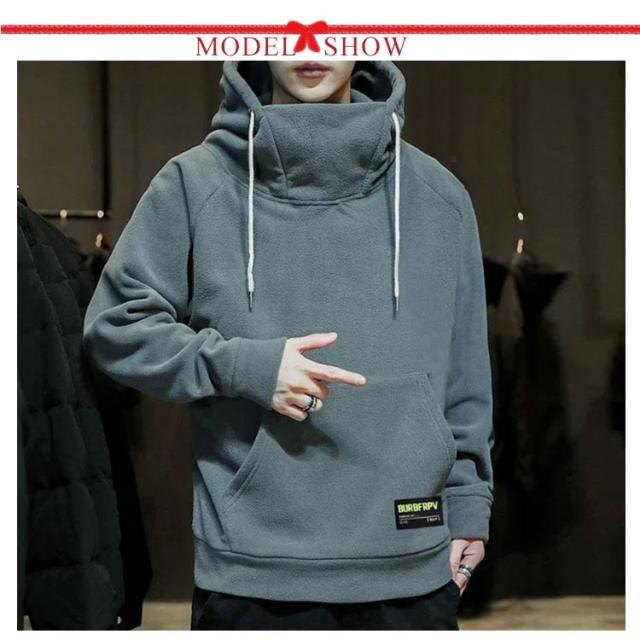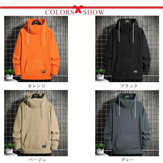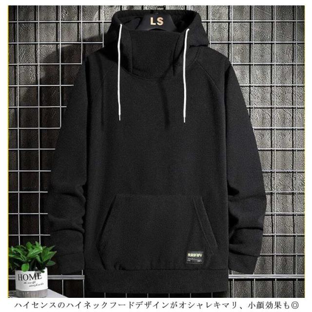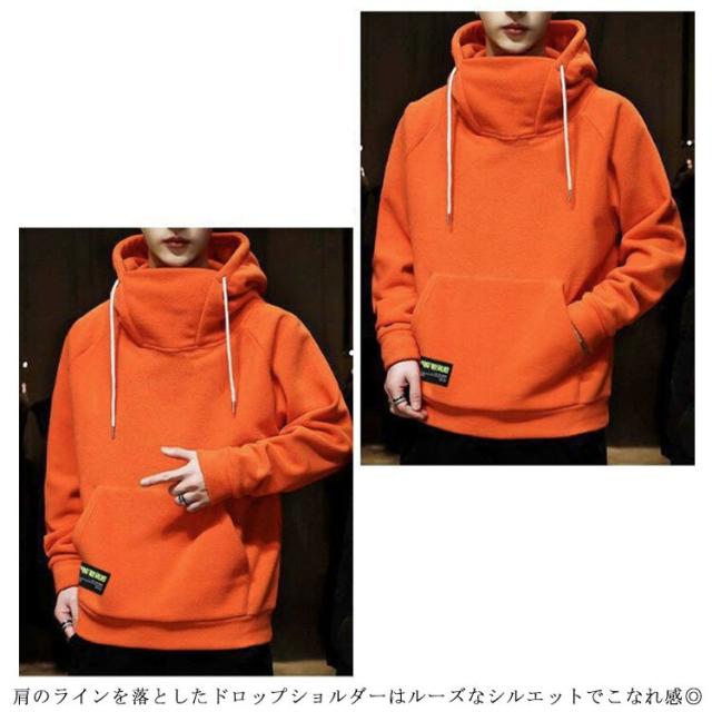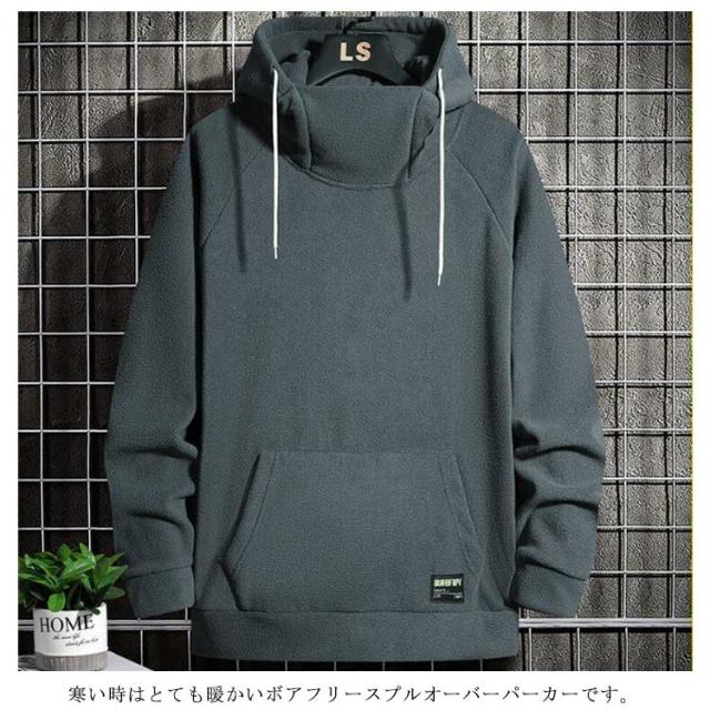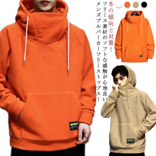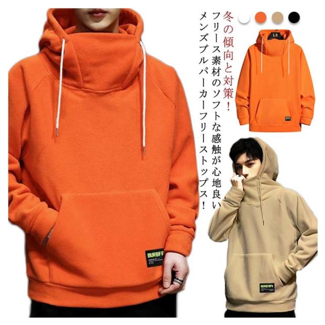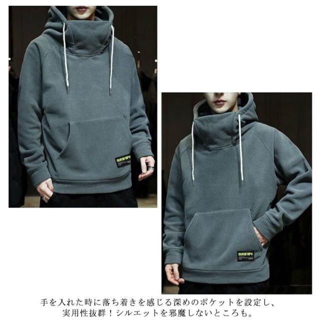 ボア パーカー トレーナー メンズ フリース 起毛 プルパーカー スウェット 長袖 タートルネック ハイネック ジャージ ボア フリース プルオーバー フーディ もこもこ フード 厚手 お洒落 無地 体型カバー ゆったり カジュアル