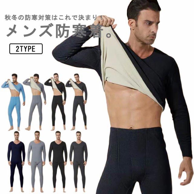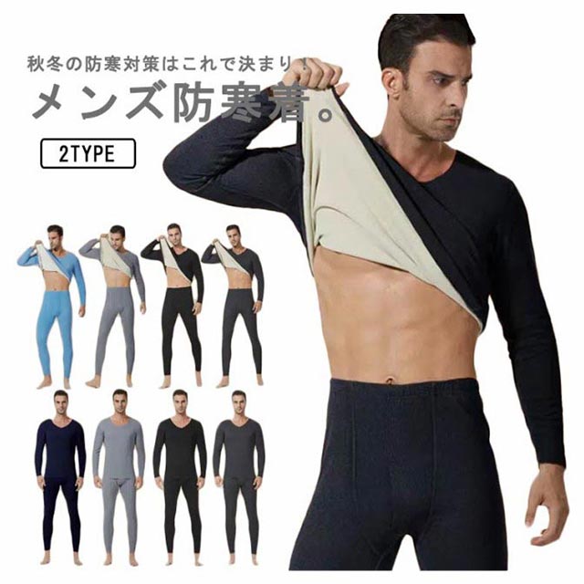 ヒートテック 防寒着 メンズ 上下セット 微起毛 両面起毛 インナーウェア 防寒インナー 肌着 Vネック ロンt アンダーシャツ 長袖 長ズボン 発熱インナー 裏毛 極暖 保温 あったかインナー アンダーウェア ストレッチ 大きいサイズ 秋冬 春 送料無料