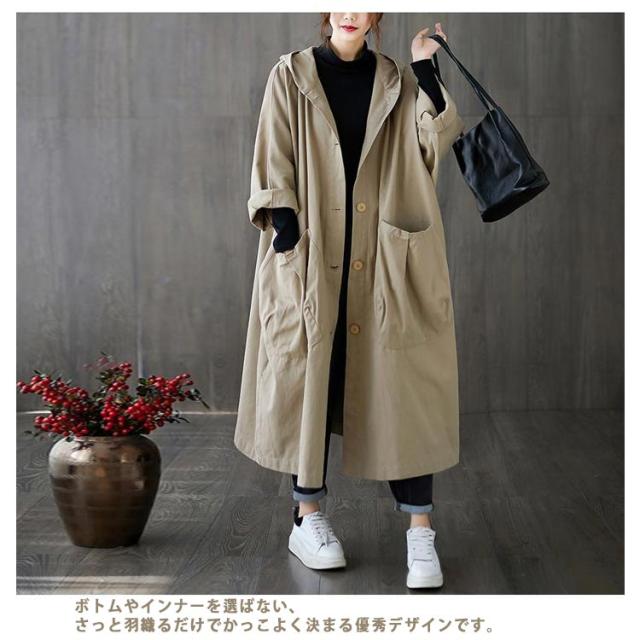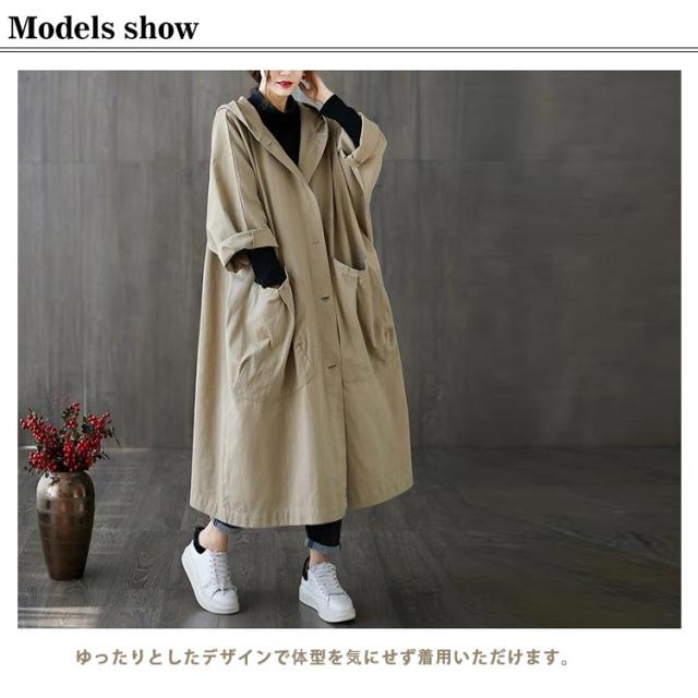 | オーバーサイズのフード付きロングコート! ゆったりとしたデザインで体型を気にせず着用いただけます。 フロントに大きいポケットがついていてとても便利です! ゆったりとした作りで厚手のインナーでも着膨れせず着用いただけます。 ふわっと広がるシルエットがお洒落なアイテム。 ボトムやインナーを選ばない、さっと羽織るだけでかっこよく決まる優秀デザインです。 着回し力の抜群のロングアウターは初夏や初秋、季節の変わり目に活躍してくれるアイテムです。 | |