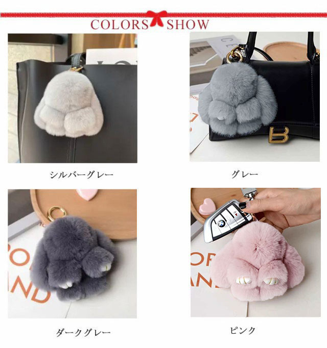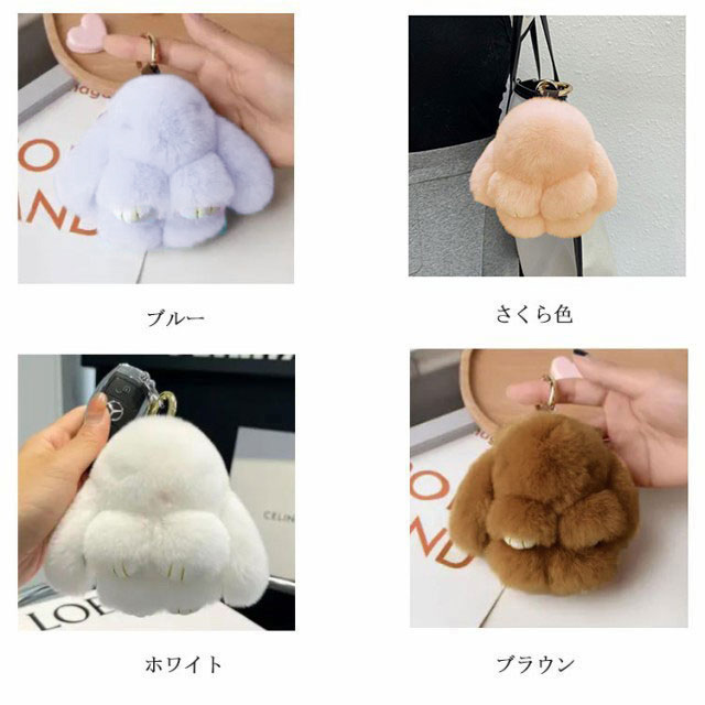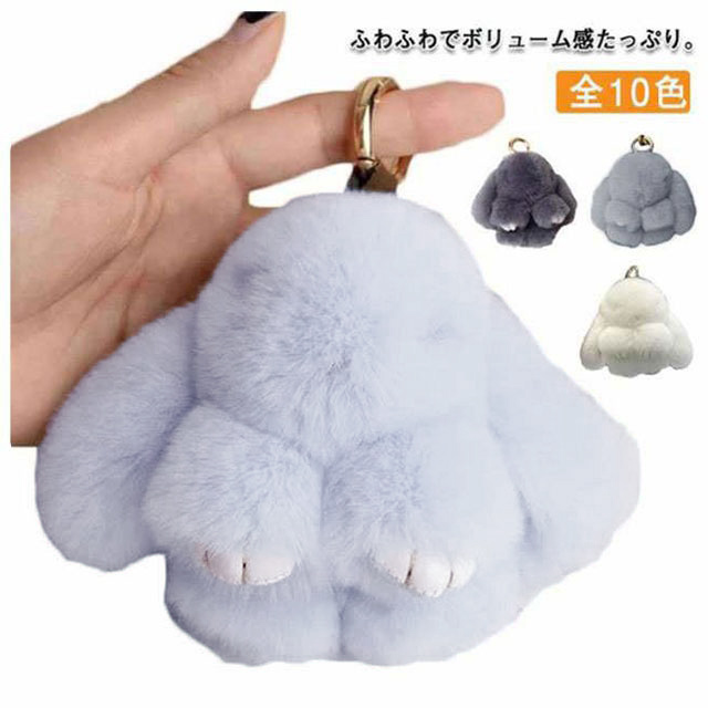 ファーチャーム バッグチャーム キーホルダー キーチェーン ペンダント うさぎ チャーム 兎 可愛い カラーバリエーション アクセサリー 小物 無地 全10色