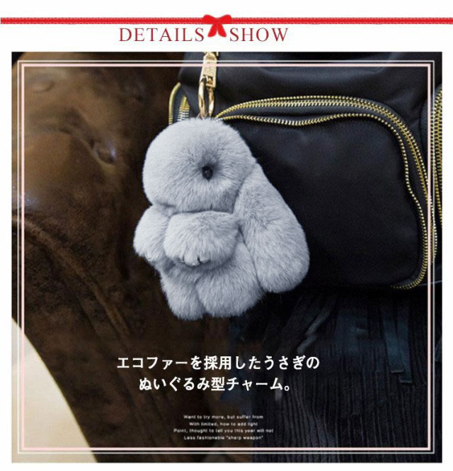 | ・ふわふわでボリューム感たっぷり。 ・エコファーを採用したうさぎのぬいぐるみ型チャーム。 ・垂れミミのうさぎをモチーフにした、ころんと可愛らしいファーアイテム。 ・思わず見入ってしまう可愛らしさです。 ・ふんわりとした見た目と、優しい肌触りのエコファーを採用。 リアルファーとくらべ、お手入れもしやすく気軽に秋冬のオシャレを楽しめます♪ ・バッグチャームとしてはもちろん、キーホルダーとしても使えます。 ・ぬいぐるみのように飾っておくだけでも可愛らしい存在感を放ってくれます。 ・フェイクレザーで仕立てた「コロン」とした足もチャームポイントです。 ・ゴールドカラーで上品なリングはワンタッチで簡単に開閉します。 ・ふかふかのファーの中には目と鼻がついています。 ・耳の裏側はフェイクレザーを使用。 ・大好きなうさぎちゃんをお気に入りのバッグにつけたら…お出掛けがもっと楽しくなりそうですね♪ | |