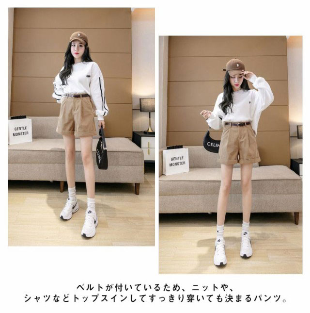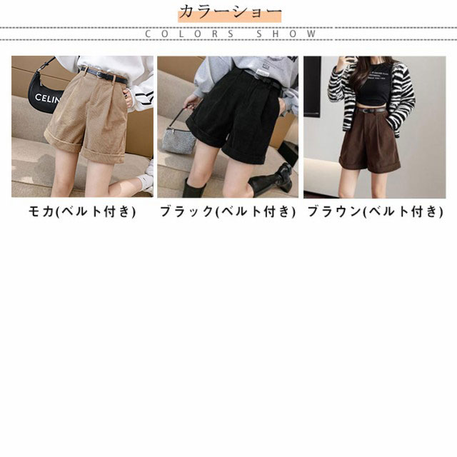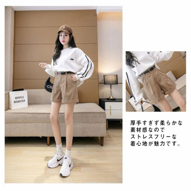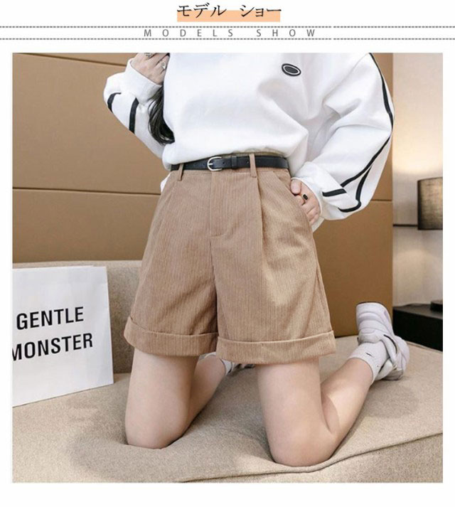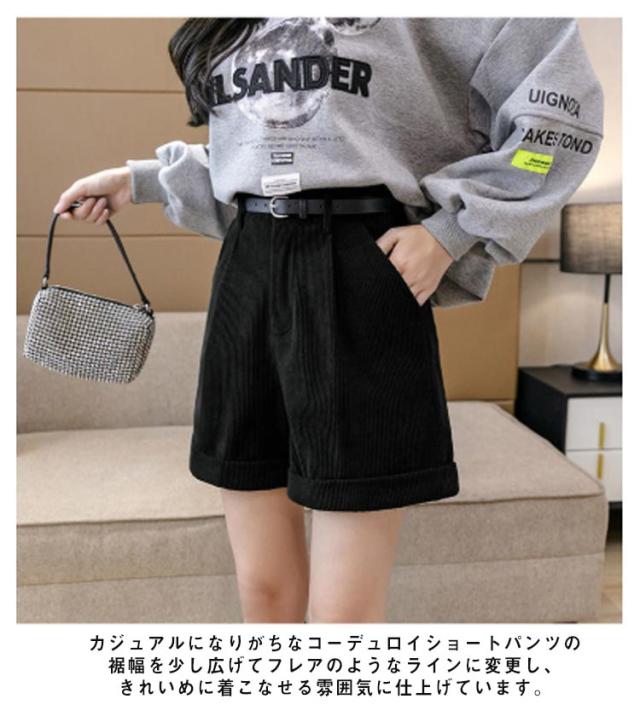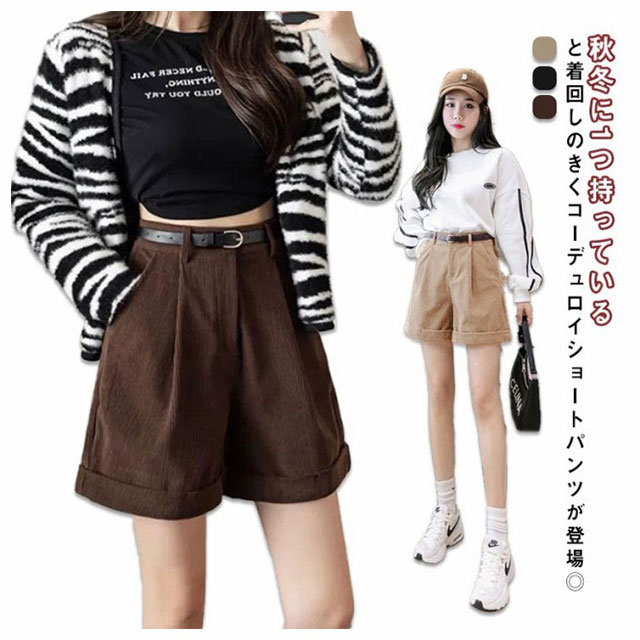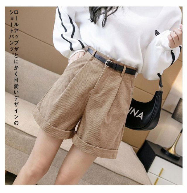 ショートパンツ レディース 秋冬 コーデュロイ パンツ ベルト付き ハーフパンツ 短パン ワイドパンツ フレア ボトムス ロールアップパンツ ハイウエスト ゆったり タック コーデュロイ 半ズボン 暖か あったか 快適 カジュアル 可愛い お洒落 秋冬 春服 秋服 冬服 送料無料