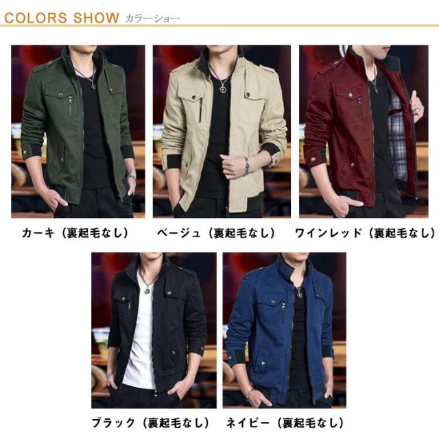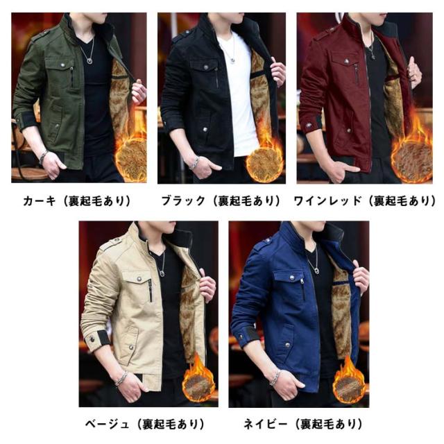 メンズ ミリタリージャケット 裏ボア 暖か トレンチコート ジャンパー 裏起毛 コート メンズファッション 長袖 上着 薄手・厚手 2種類 裏地付き スタンドカラー 冬服 保温 ジャケット 着痩せ 防寒 アウター 大きいサイズ カジュアル 無地 バイクウェア 春 秋 冬 送料無料