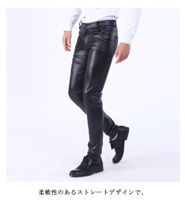 レザーパンツ メンズ PU スキニー 革パンツ 裏起毛 冬 革パン バイク パンツ ライダースパンツ フェイクレザー レザー レザーパンツ ロックパンツ メンズファッション