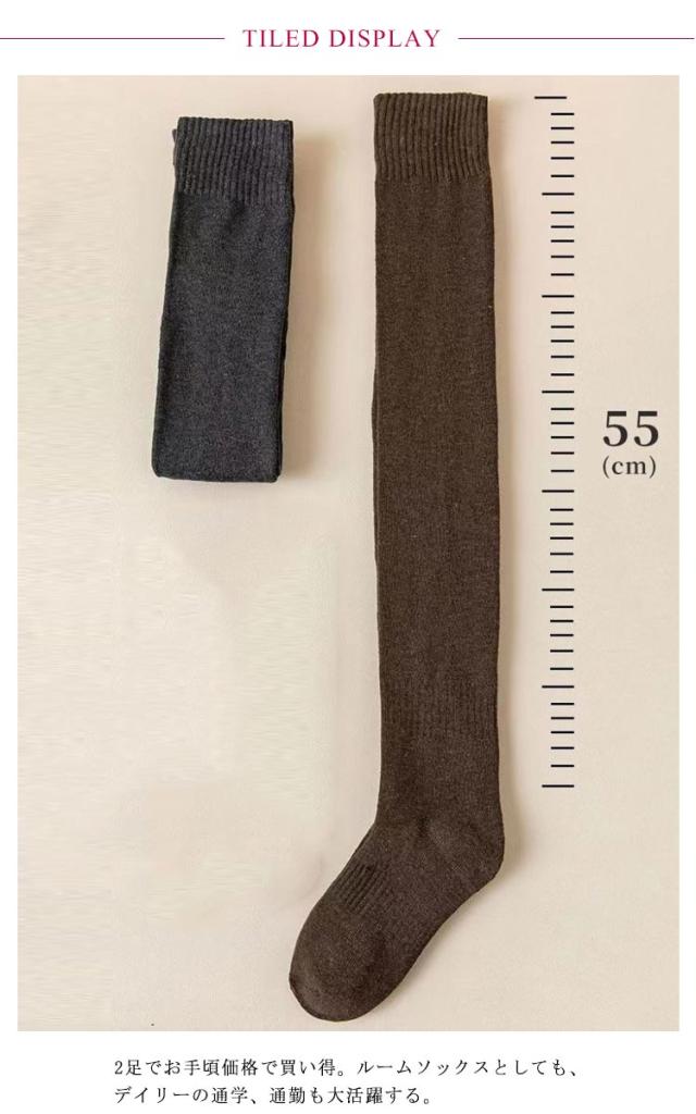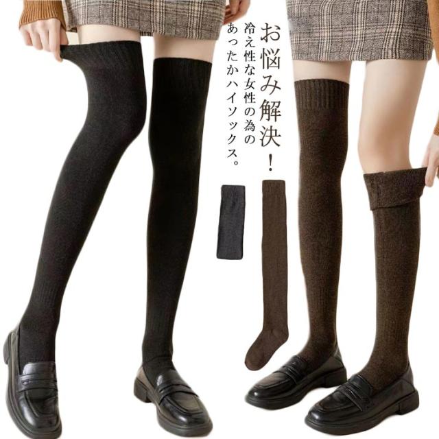 送料無料 オーバーニーハイソックス ウール調 靴下 2足セット ハイソックス ニーハイソックス ロング丈 靴下 厚手 ソックス リブ 保温 防寒 スクールソックス 秋 冬 無地 くつ下 学生 通学 通勤 冷え対策 美脚
