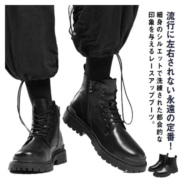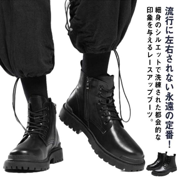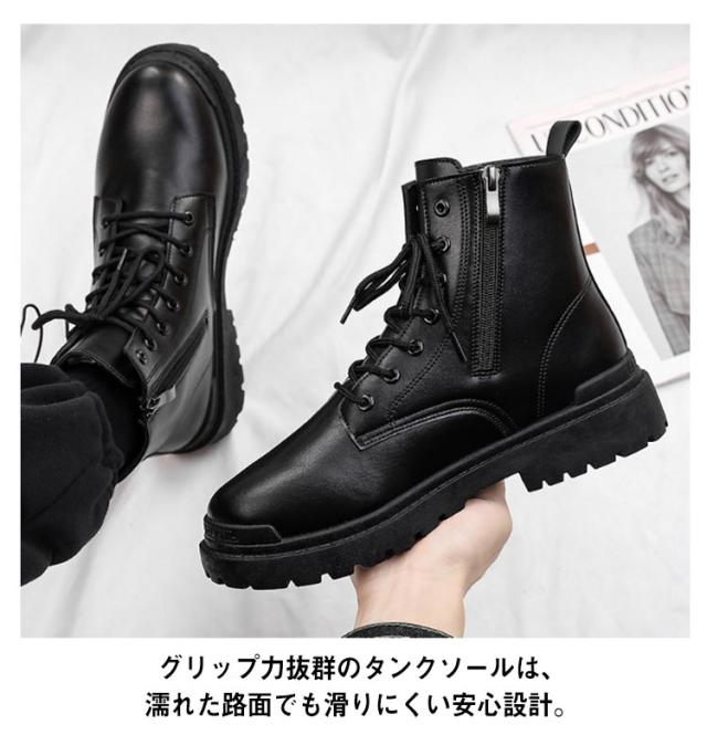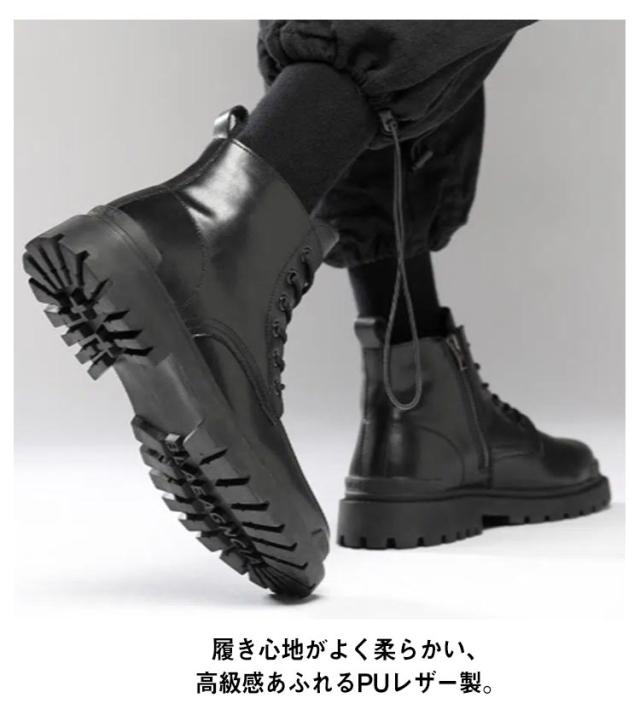 ワークブーツ モード系 メンズ ブーツ サイドジップ ショートブーツ メンズブーツ 厚底 身長アップ ファスナー エコレザー 厚底ブーツ シークレットソール 6cm 8cm 10cm レースアップブーツ ミリタリーブーツ