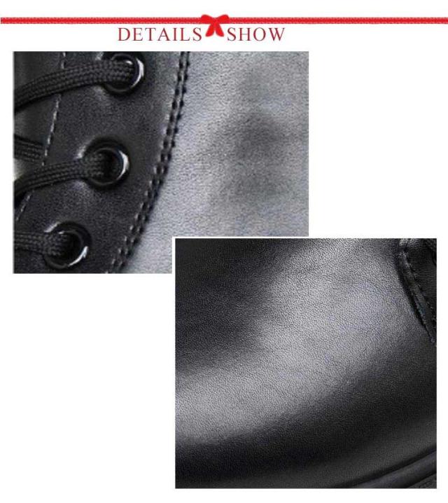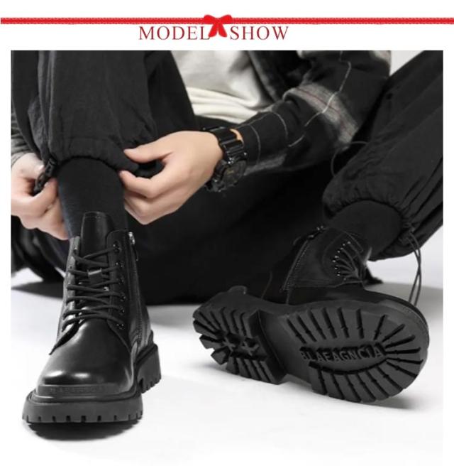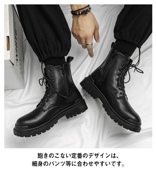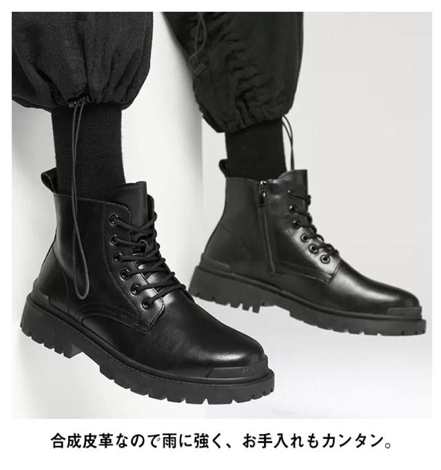 | 流行に左右されない永遠の定番!細身のシルエットで洗練された都会的な印象を与えるレースアップブーツ。 履き心地がよく柔らかい、高級感あふれるPUレザー製。合成皮革なので雨に強く、お手入れもカンタン。 脚長効果が期待できる厚底デザイン。6cm/8cm/10cmのシークレットソールから選んでいただけます。 靴の重さも軽めに設計されているので歩きやすく、サイドZIP付きなので着脱も簡単に行えます。 グリップ力抜群のタンクソールは、濡れた路面でも滑りにくい安心設計。 飽きのこない定番のデザインは、細身のパンツ等に合わせやすいです。 | |