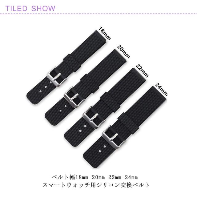 | ベルト幅18mm 20mm 22mm 24mm スマートウォッチ用シリコン交換ベルト 取り付け時の工具が不要スライド式の接続部位、とても便利 ベルトはしっかりめのシリコン素材になり、カラー展開は14色 | |