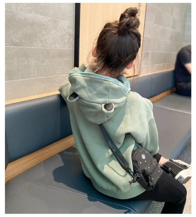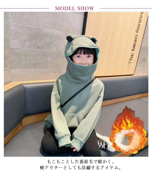 | 男女兼用タイプ!キュートで萌えるかえる耳付き大きめのフードがかわいいパーカー。 もこもことした裏起毛で暖かく、軽アウターとしても活躍するアイテム。 表地も柔らかく、肌触りの良い素材感も魅力です。 面白くて可愛いフカのフードにファスナーが付いて、頭を隠してフカに変身! サイズは110cmから160cmまで選べて、姉妹兄弟と揃いにもオススメです。 | |