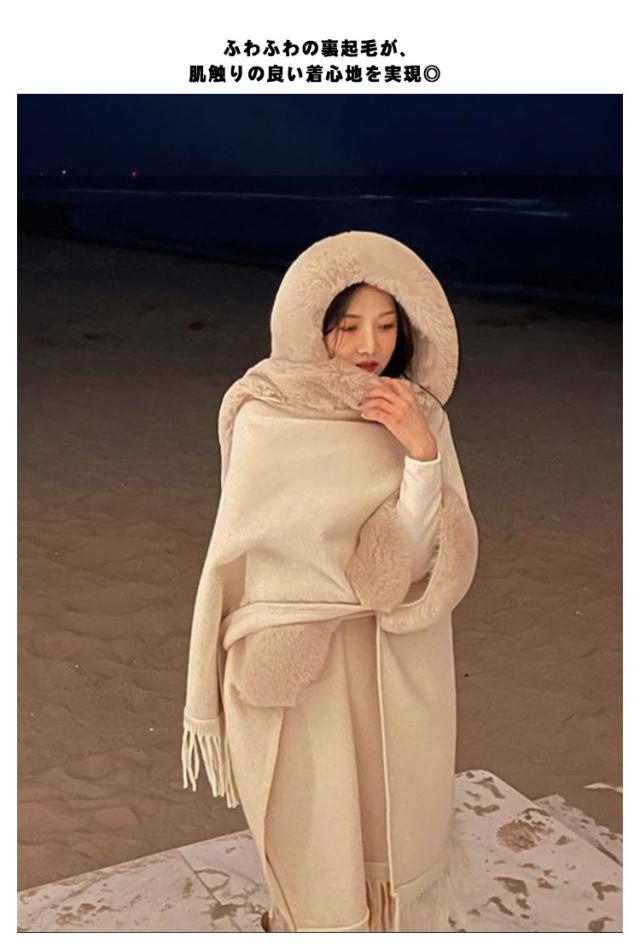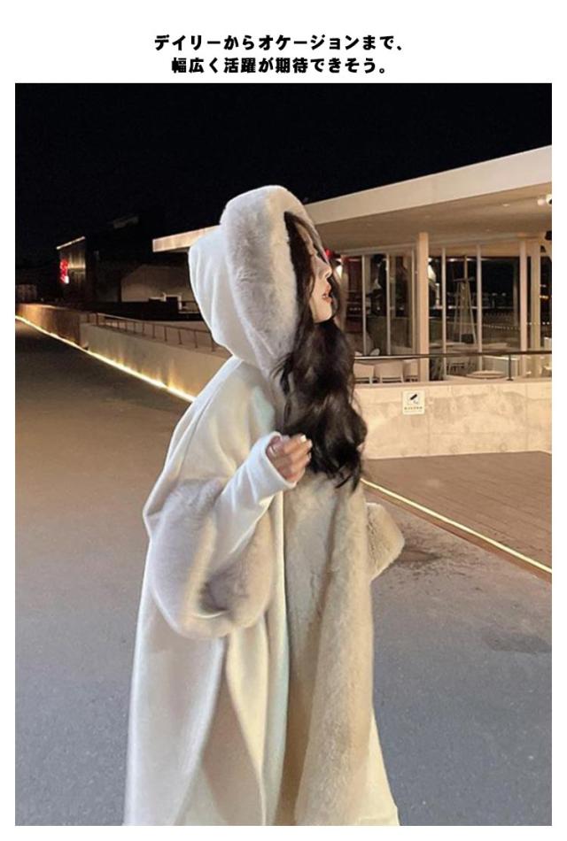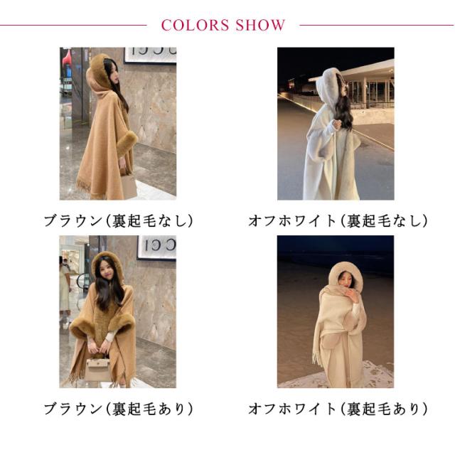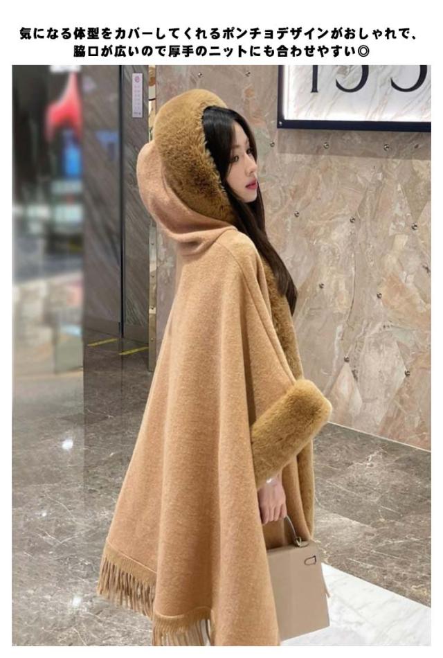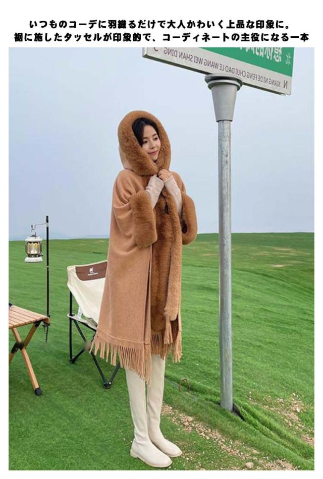 ケープコート レディース ポンチョコート マント 秋冬 アウター 羽織 ミドル丈 フード付 ケープ ポンチョ風 裏起毛 防寒 暖かい コート ファー コート 上着 ゆったり 大きいサイズ 体型カバー ジャケット タッセル 無地 上品 きれいめ 通勤 OL 結婚式 ギフト 送料無料