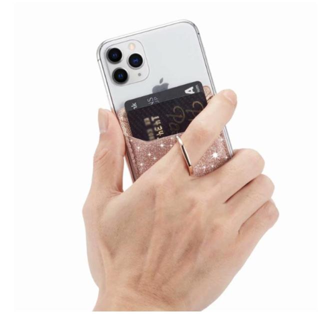 スマホカードポケット 背面ポケット カードホルダー 貼り付け カード収納 PUレザー カード入れ スタンド機能 収納ポケット リング付き 落下防止 全機種対応 スマホアクセサリー お洒落 送料無料