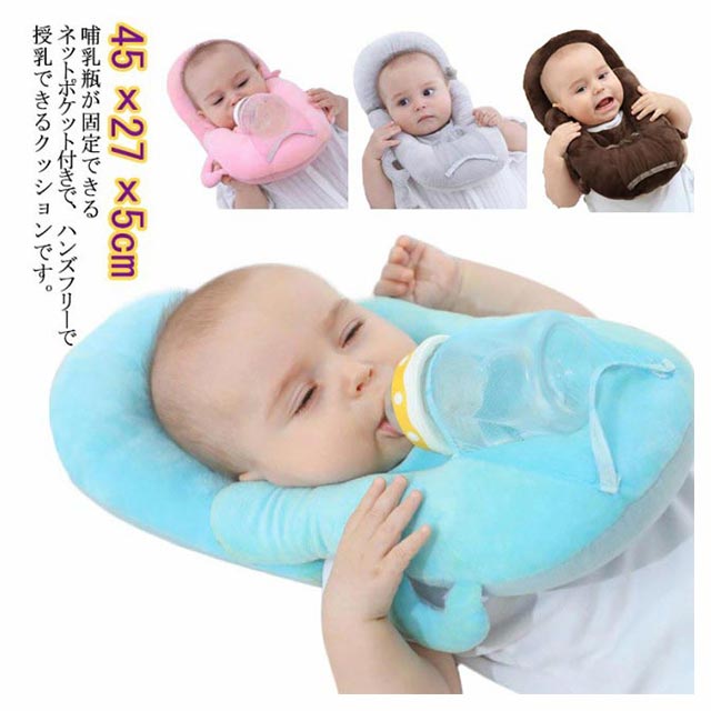 | 哺乳瓶が固定できるネットポケット付きで、ハンズフリーで授乳できるクッションです。 頭部分に凹みがあるので頭のぐらつきを軽減します。 クッションが上下で分かれるため、赤ちゃんの体形に合わせて調節ができます。 抱っこ授乳で腕が疲れたときや、双子・三つ子で授乳のサポートが必要な人におすすめです。 長いミルクの時間から解放され、ミルクタイムを家事や仕事の時間に使えるので余裕があると子育てを楽しめます! 洗濯機で丸洗いが可能なため、いつでも清潔に使えます。 | |