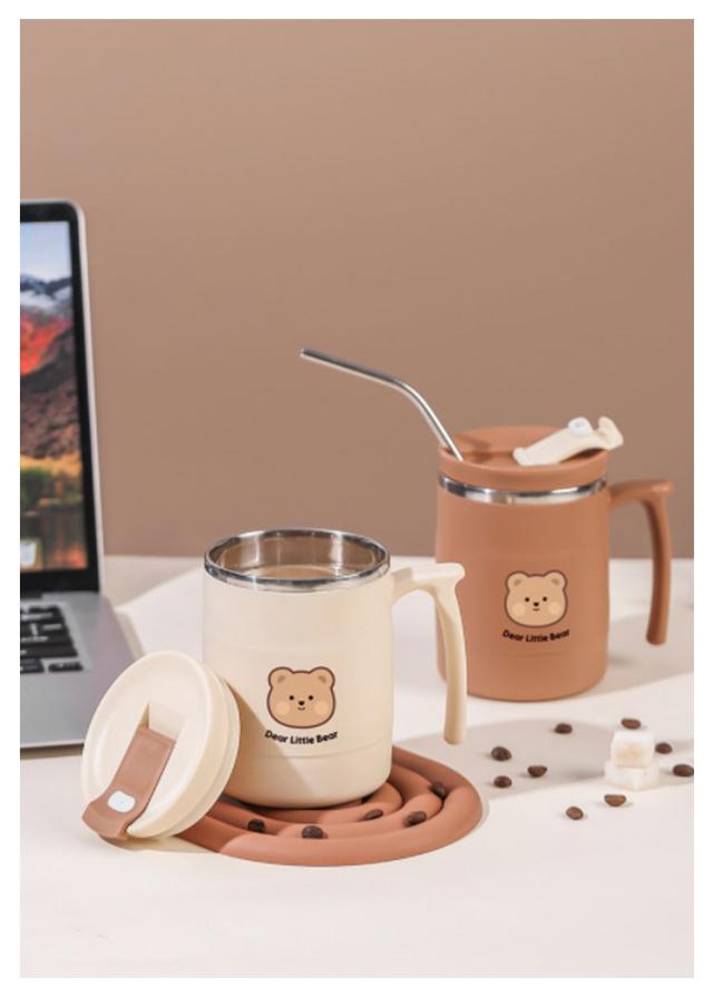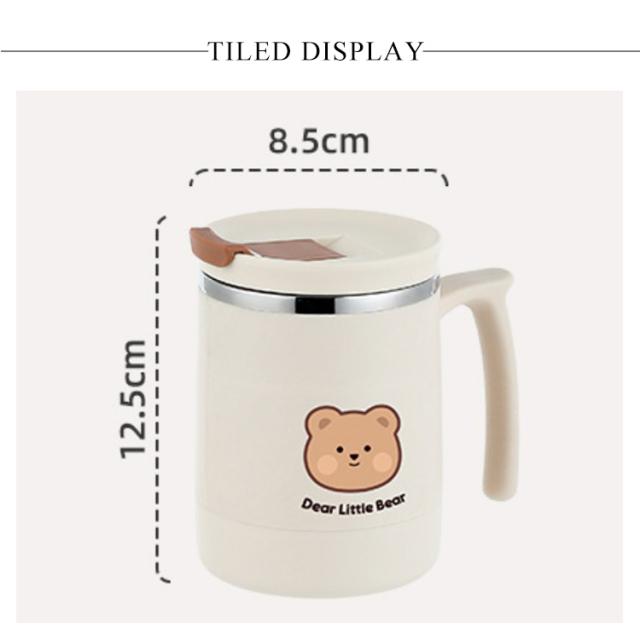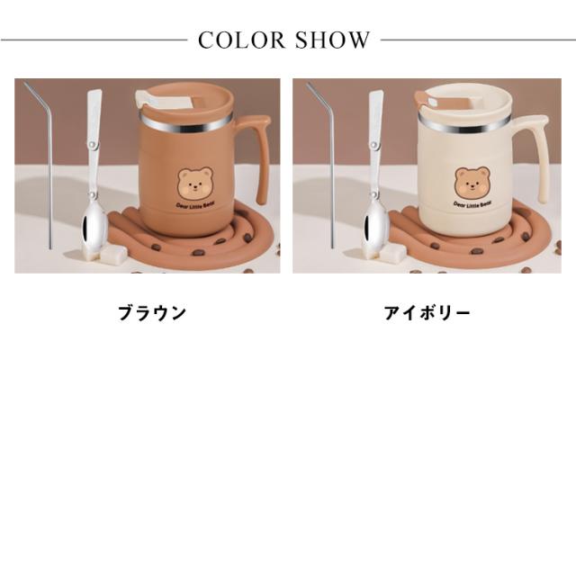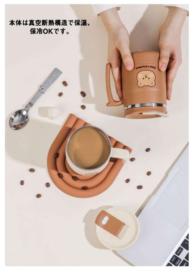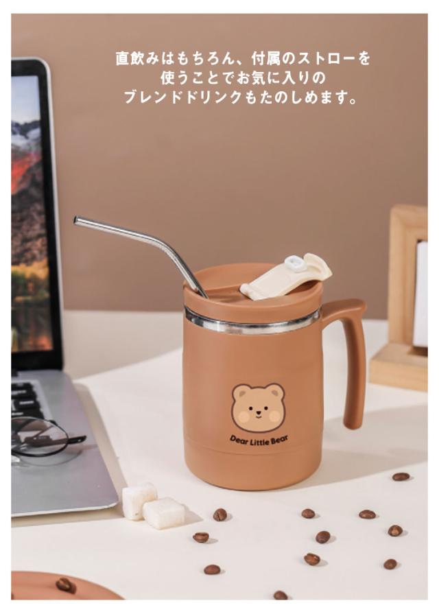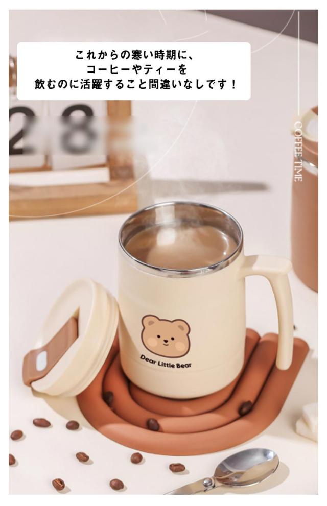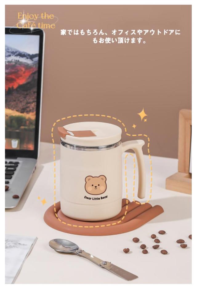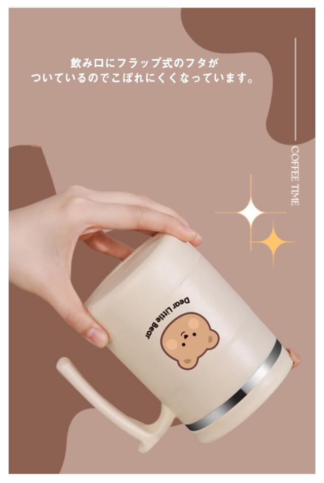 保温 保冷 マグカップ クマ柄 500ml 取っ手付き 蓋付き ステンレス 真空 二重構造 タンブラー コーヒーカップ おしゃれ かわいい オフィス 自宅 レジャー リモート お茶 コーヒー 女性 学生 大人【送料無料】