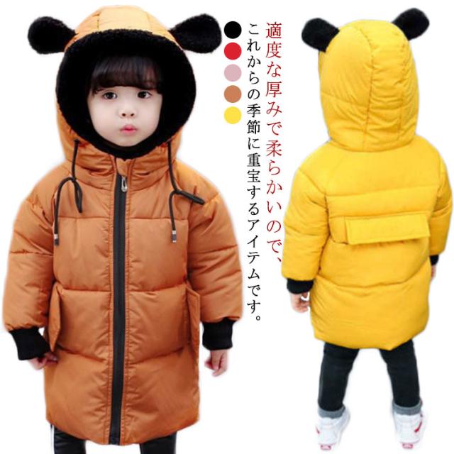 ダウンコート 子供 中綿コート キッズ 男の子 女の子 ダウンジャケット クマ耳付き ベビー ロングコート 冬着 子ども服 暖かい ベビー服 アウター 赤ちゃん 無地 可愛い 軽量 冬服 防寒 80 90 100 110 120 130 140 150 送料無料