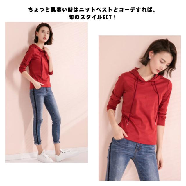 | シンプルながらオシャレ決まりのフード付きプルオーバー。 体型をさりげなくカバーするゆるシルエットが嬉しいポイント。 春秋は1枚で、ガウチョパンツやスカートなボトムスを選ばず、スタイルよくお洒落ガールに♪ ちょっと肌寒い時はニットベストとコーデすれば、旬のスタイルGET! 生地は伸縮性があり、柔らかい肌触りで着心地快適。 | |