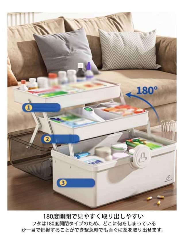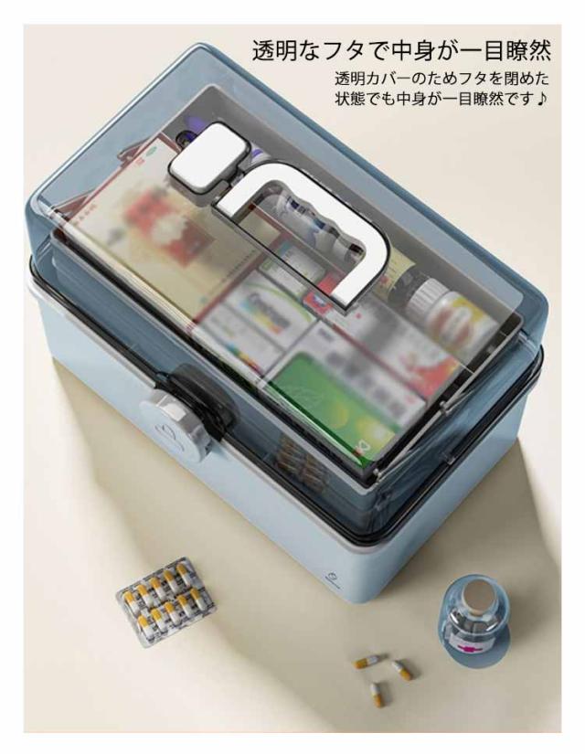 選べる2サイズ 救急箱 薬箱 三段式 収納ボックス クリア 家庭用 車載用救急箱 大容量 多機能収納ケース 救急ボックス 取っ手付き 軽量 コンパクト 携帯便利 応急処置 薬入れ 小物入れ