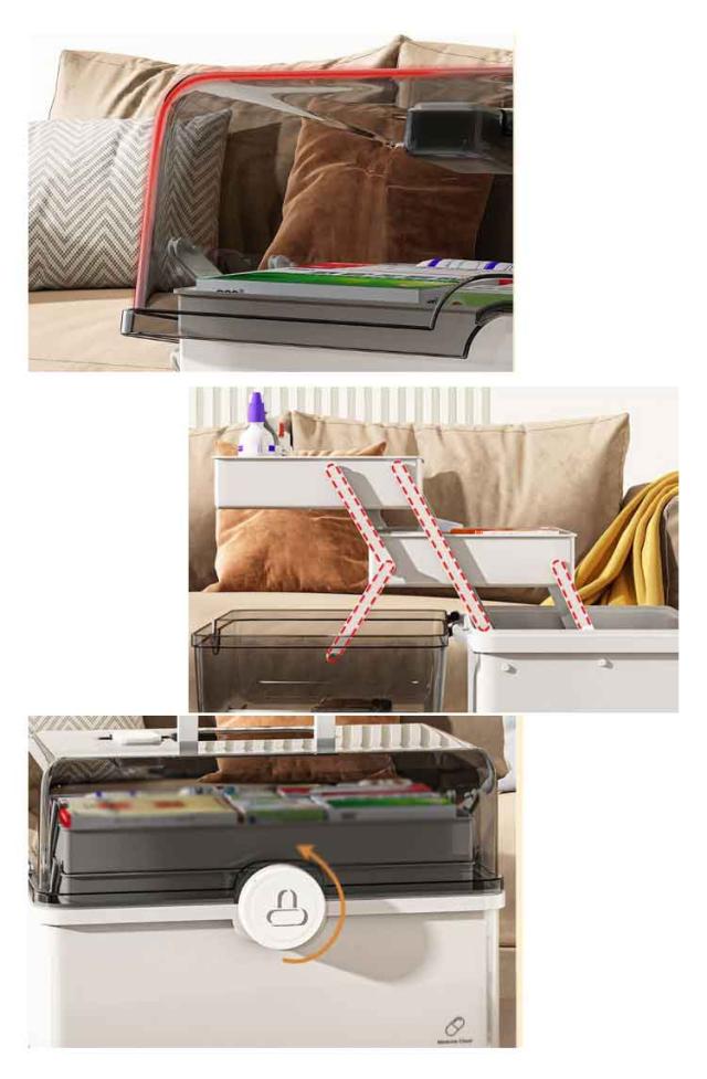 | 使いやすさと機能性にこだわった、おしゃれな薬ケースです! 家庭用に、緊急時用に、アウトドア用に。 3段式の折り畳みボックスのため沢山の物を綺麗に収納することが可能です。 開閉部分には「回転式安全ロック」を採用することでお子さんが不用意に開けて薬を飲みこんでしまうことを防ぎます。 また、持ち上げる際にフタが開いて中身が全て落ちることを防ぎます。 フタは180度開閉タイプのため、どこに何をしまっているか一目で把握することができ緊急時でも直ぐに薬を取り出せます。 透明カバーのためフタを閉めた状態でも中身が一目瞭然です♪ | |