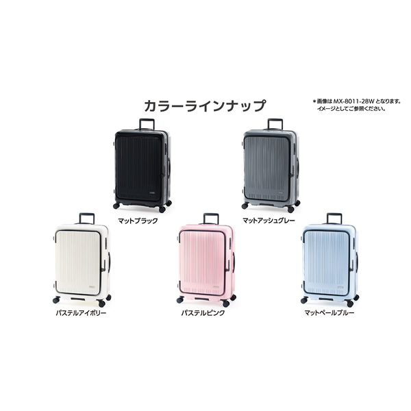 大容量+多機能でスタイリッシュ! 荷物の仕分けに便利な2種類の仕切り付き! 大好評の横開きタイプ! [MAXBOX] MX-8011-24W[5泊〜7泊] 70L→78L ■カラー マットブラック ■アイテムNo MX-8011-24W ■サイズ(cm) 内寸 H60.0 × W42.5 × 29.0(拡張+3) cm 外寸 H64.5 × W45.5 × 29.5(拡張+3) cm ■重さ 約4.0kg ■容量 約70(拡張+8)L ■旅行日数目安 5泊〜7泊 ■ワンタッチ 前輪ストッパー機能 / 高純度ポリカーボネイト100% / 拡張機能 / SEK基準・抗菌内装生地 / HINOMOTO 静音ダブルホイールキャスター”Lisof(R) Silent Run” / YKK社製ファスナー / ボトムハンドル ■手荷物預け無料サイズ ※記載は商品仕様の一部です。仕様説明不足等の理由での返品はできません。特に適合等は必ずご確認ください。