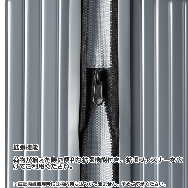 荷物が増えた際に便利な拡張機能付き。拡張ファスナーを広げてご利用ください。