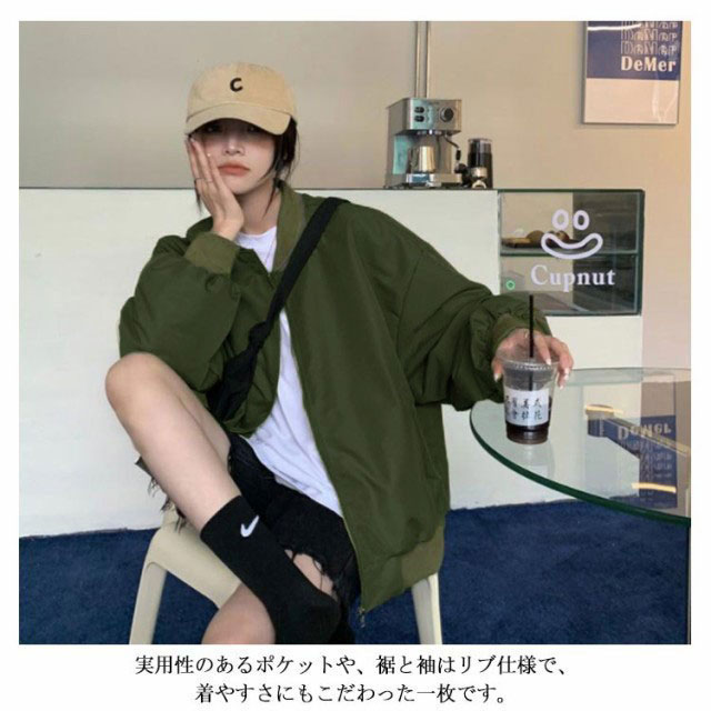 MA-1 ジャケット レディース ノーカラージャケット フライトジャケット レディース 羽織り ブルゾン ビッグシルエット 春秋 ジャンパー アウター エムエーワン ma-1 ミリタリー カジュアル ストリート ビンテージ S M L XL 2XL