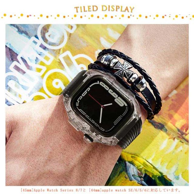 アップルウォッチ ケース バンド セット 透明 TPU ケース シリコンバンド Apple Watch SE 8/7/6/5/4対応 耐衝撃 保護カバー 装着簡単 メンズ スポーツ スマートウォッチケース シンプル 男性に 贈り物 プレゼント ギフト 【送料無料】