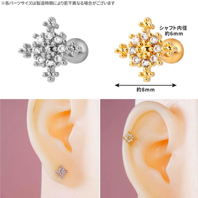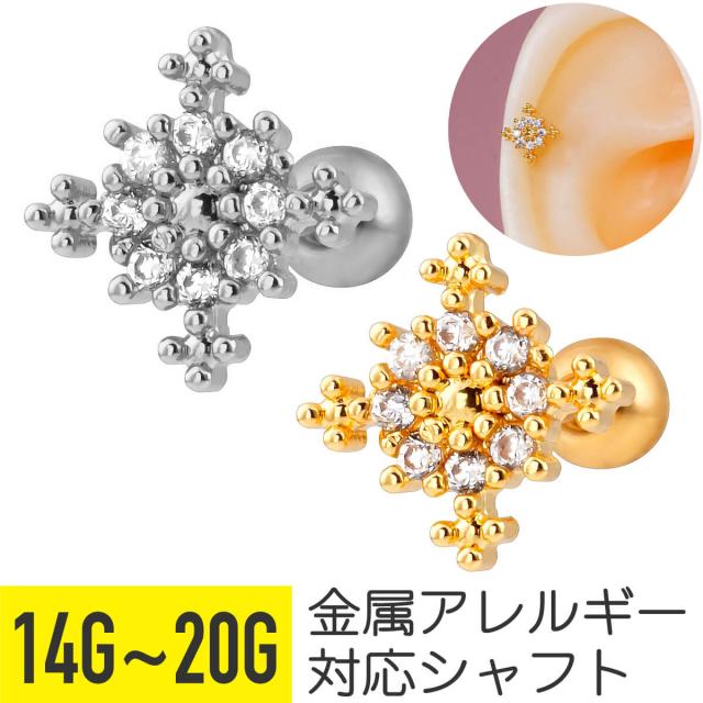 スノー クリスタル ビジュー ストレートバーベル 14G 16G 18G 20G サージカルステンレス ジルコニア ヘリックス 軟骨ピアス ボディピアス