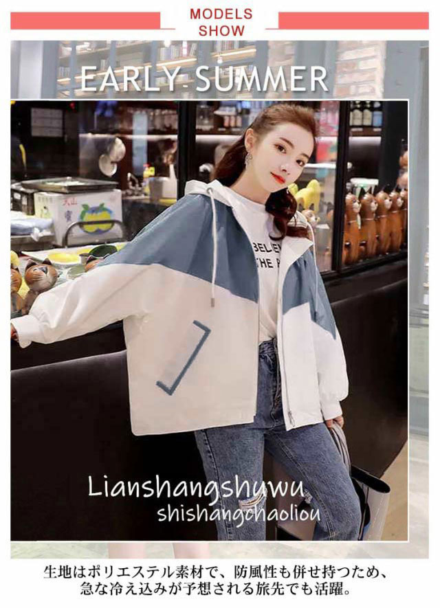 アウター レディース ウインドブレーカー ウインドブレーカー ジャケット 春 ジャンバー 薄手 ブルゾン 切り替え 無地 フード付き パーカー UVカット 紫外線対策 ショート丈 ライトアウター ルーズ 防風 おしゃれ 春 夏 秋 学生 10代 20代 30代 40代 送料無料