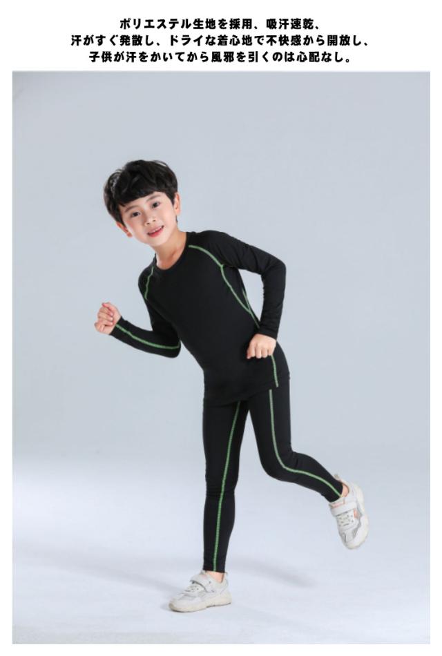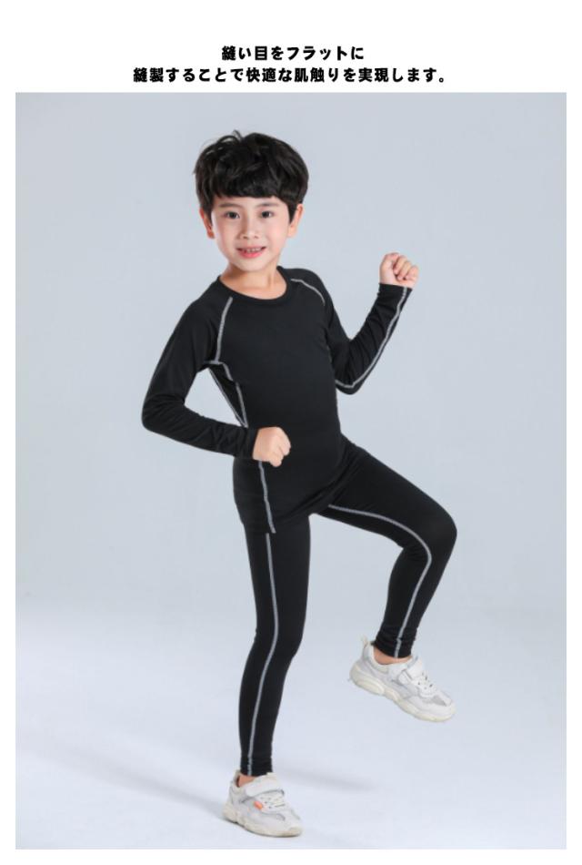 サッカー インナー キッズ スポーツアンダーウェア ストレッチ 上下セット コンプレッションウェア トレーニングウェア セットアップ 送料無料 長袖 インナーシャツ タイツ ロングレギンス 120 130 140 150cm 運動着 吸汗 速乾