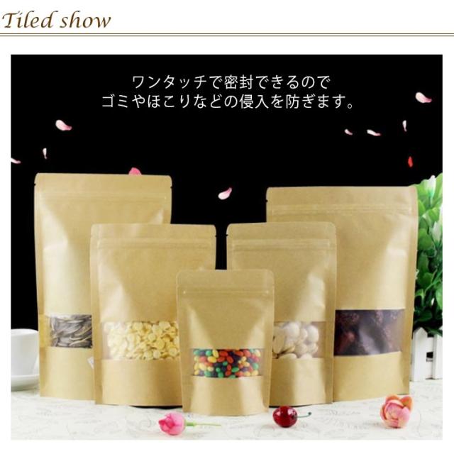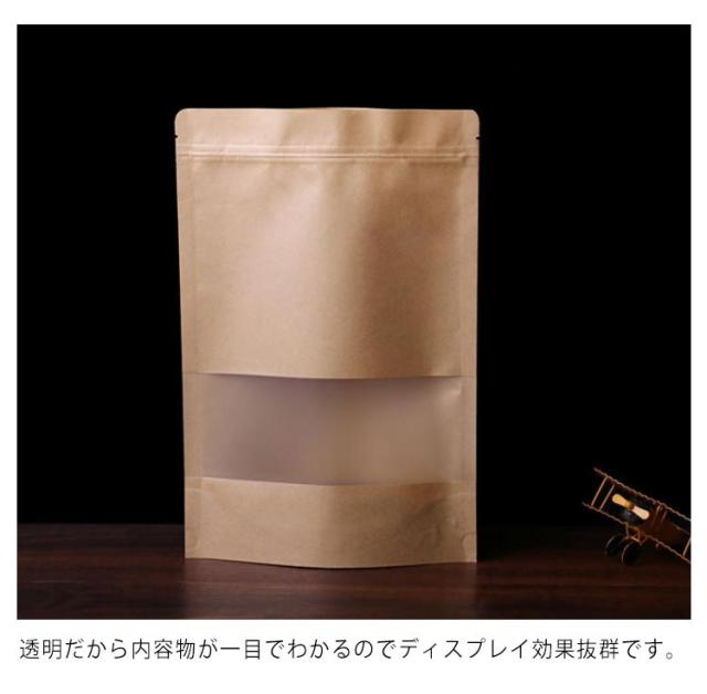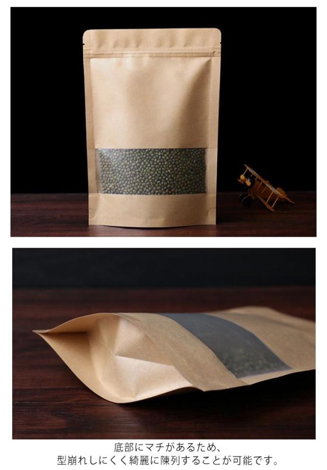 | 中身が見える窓付き・チャック付クラフト袋です。 ワンタッチで密封できるのでゴミやほこりなどの侵入を防ぎます。 透明だから内容物が一目でわかるのでディスプレイ効果抜群です。 広口設計だから簡単に出し入れができます。 底部にマチがあるため、型崩れしにくく綺麗に陳列することが可能です。 クラフト紙が自然な風合いを演出。ナチュラル素材から受けるエコイメージでお店の印象もアップします。 | |
