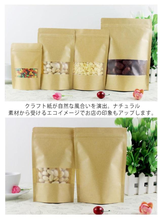 100枚入り クラフト袋 チャック付 透明 クリア クラフト袋 密閉袋 透明窓付き クラフト紙袋 ジップ袋 食品保存 食品収納袋 キッチン収納 保存袋 無地 ナチュラル お菓子 大人数 配布 入り バレンタインデー ママ会 ギフト プレゼント 送料無料 12*20cm 14*20cm 15*22cm