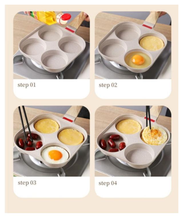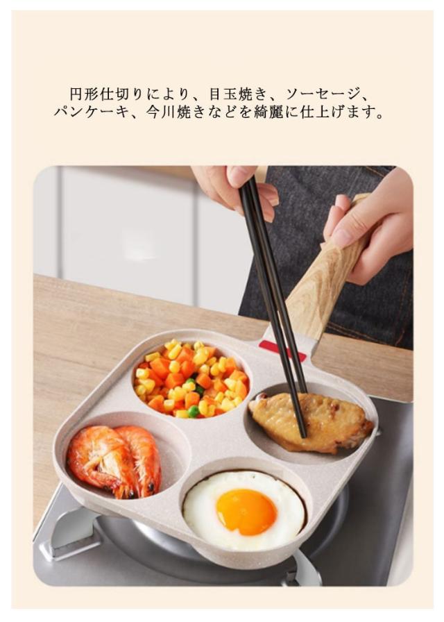 目玉焼きフライパン 仕切り付き 4穴フライパン 四角型 お弁当 作り 4つ穴円形フライパン マルチパン 卵焼きフライパン 朝食フライパン 焼きおにぎり 丸い 朝食 ステーキ お手入れ簡単