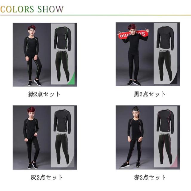 | 伸縮性&速乾性に優れたキッズ用スポーツアンダーウェア上下セット。 着心地よく、動きやすい伸縮性の高い生地を採用し、締め付けないので初めてのコンプレッションウェアをきるお子様に最適です。 適当な筋肉損傷を保護することができます有効的に過激な運動による損傷を和らげます。 ドライな着心地で不快感から開放し、集中力をアップさせ、パフォーマンスを引き出します。 縫い目をフラットに縫製することで快適な肌触りを実現します。 サッカー、フットサル、ゴルフ、野球、ソフトボール、テニス、バスケットボール、バレーボール、ラグビー、卓球、サイクリング、バドミントン、柔道、自転車、日常など様々なシーンで幅広くご利用いただけるキッズコンプレッションウェアです。 | |