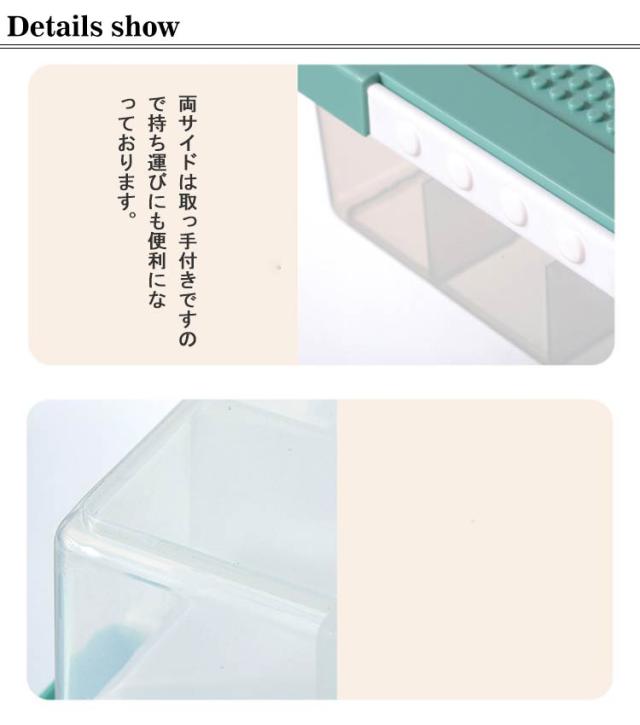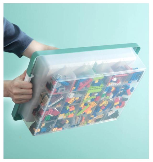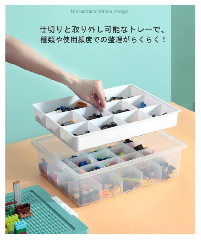 | 散らばりがちなブロックなどの小物を整理・収納! フタ部分はお子様がブロック遊びに使える凸凹構造になっています。 ブロックが落ちにくい設計でお子様は楽にお使いいただけます。 仕切りと取り外し可能なトレーで、種類や使用頻度での整理がらくらく! 両サイドは取っ手付きですので持ち運びにも便利になっております。 蓋にロック付きなので、ホコリ防止、防塵・防カビ・防湿・防虫ができます。 高品質なPPを採用し、高い靭性、耐磨耗・引き裂きに強く、より強い荷重能力があります。 クリアケースのため、収納した部品などが一目でわかります。 | |