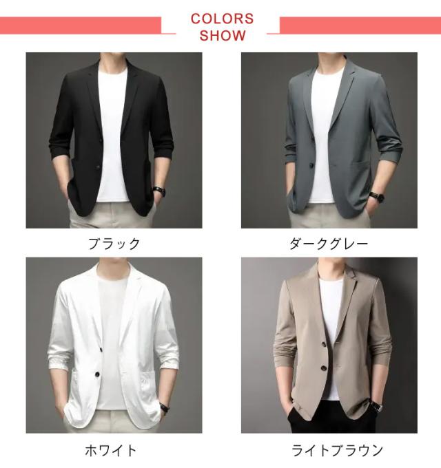 テーラードジャケット メンズ サマージャケット 接触冷感 春夏 おしゃれ 送料無 長袖 薄手 大きいサイズ 涼しい シンプル カジュアル おしゃれ 紫外線対策 シンプル