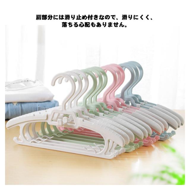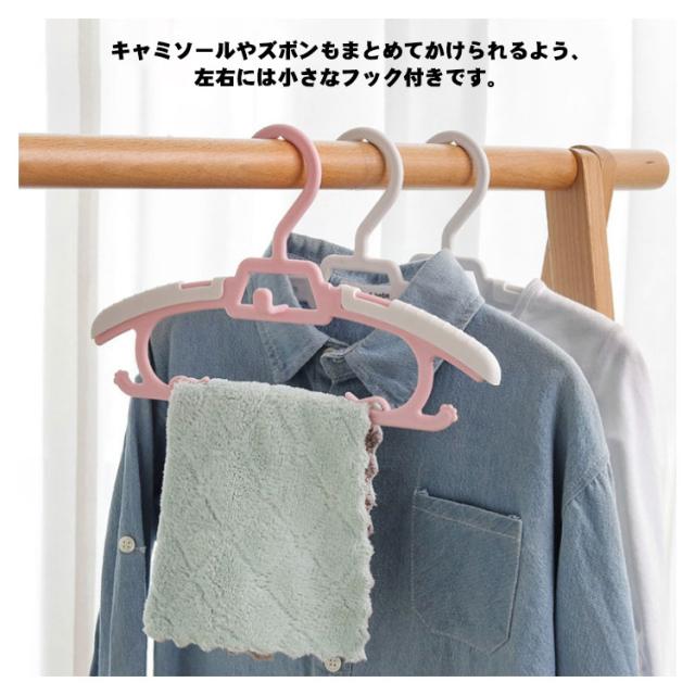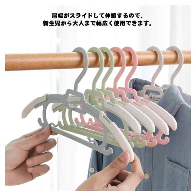 | 新生児から子どもが成長するまで使用できる伸縮式ハンガー。 20本セット 上質なプラスチック素材を採用しており、耐重量9kgのしっかりした作りが特徴。 肩幅がスライドして伸縮するので、新生児から大人まで幅広く使用できます。 肩の部分が湾曲しているため、服が変形したり滑って落ちたりするのを防げます。 肩部分には滑り止め付きなので、滑りにくく、落ちる心配もありません。 キャミソールやズボンもまとめてかけられるよう、左右には小さなフック付きです。 連結可能なフック付きでクローゼットの整理整頓に便利です。 | |
